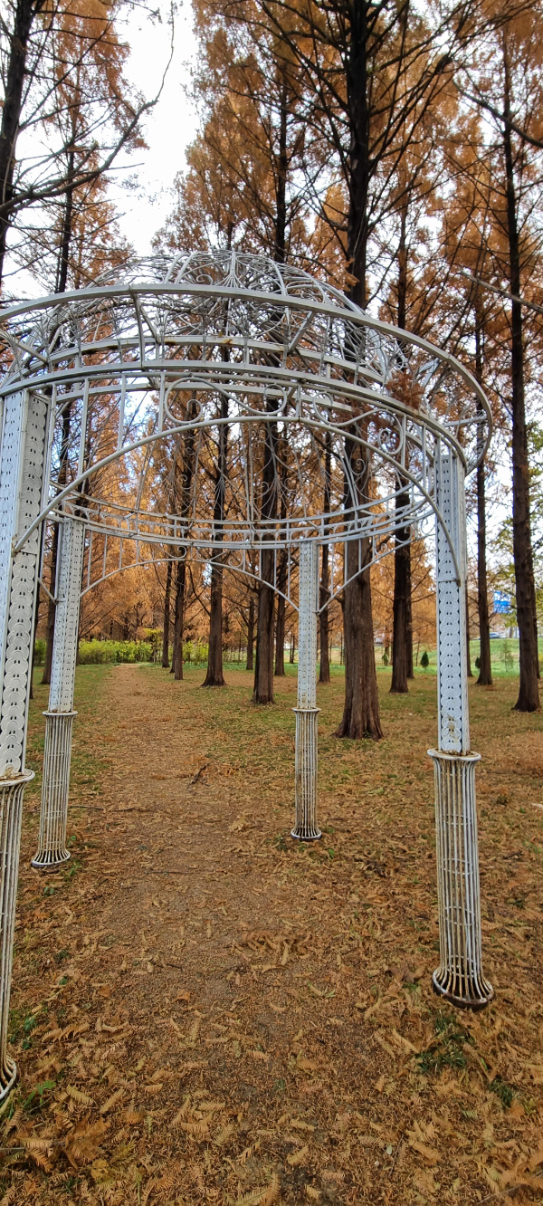 길게 뻗은 메타세쿼이아가 셀프웨딩촬영하기 좋도록